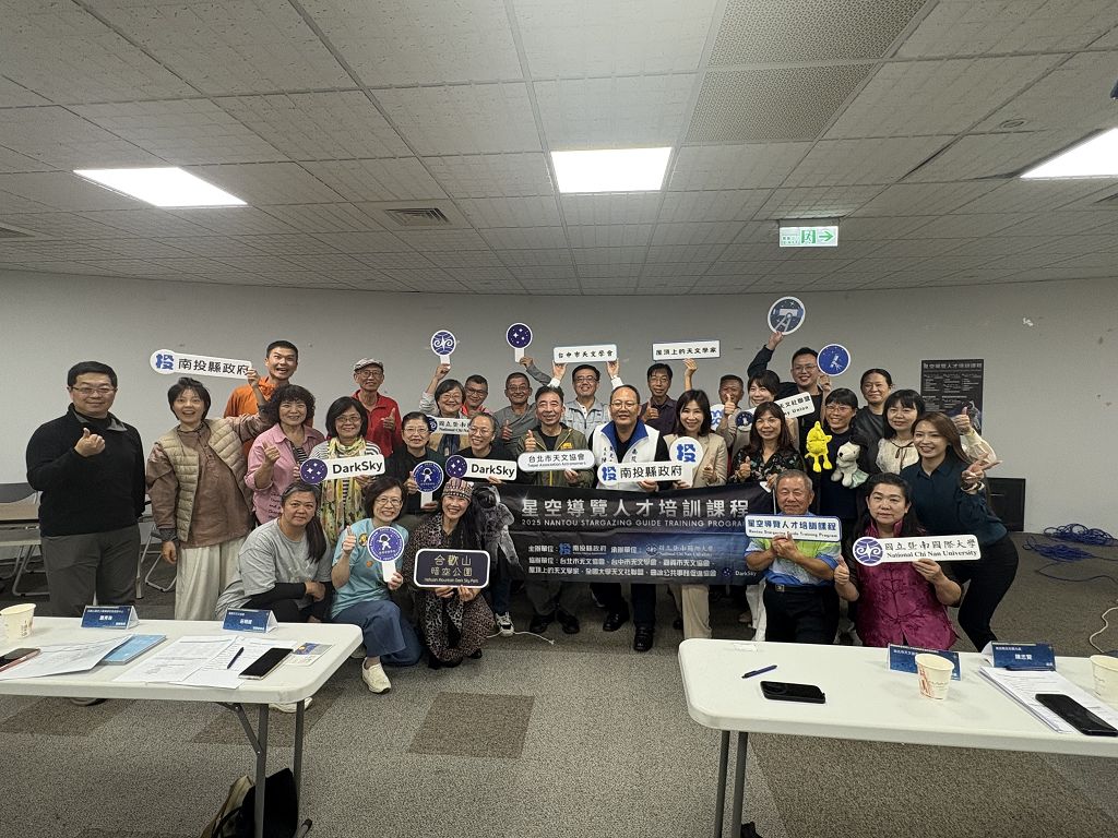 南投縣政府舉辦「2025南投縣星空導覽人才培訓課程」,經歷一個多月密集理論及夜間實作訓練後,11月27日共有18位學員順利取得通過證書,由縣府觀光處處長陳志賢代表縣長許淑華授證。本次課程內容涵蓋暗空知識、天文觀測技巧,以及鹿谷、清境等地的夜間導覽演練,內容扎實,成功培育出一批具備專業觀星能力的星空導覽新秀。