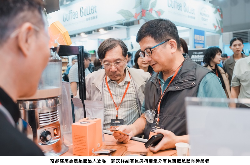 農村水保署臺南分署柯燦堂分署長表示,南部是咖啡及可可2大重要產區,今年特地集結雙黑金得獎業者打造了南部雙黑金選集館,邀請六家南方代表品牌-嵐咖啡館&締武咖啡農場、嵐雲綠海咖啡、巴魯那、大鋤花間咖啡生態農場、南國天物合作社、美和科技大學 CiaoYu 幸福。這些品牌以友善耕作、低碳製程與教育創新實踐永續農業,展現農村產業的專業力與文化厚度,成為「雙黑金」精神的最佳詮釋。