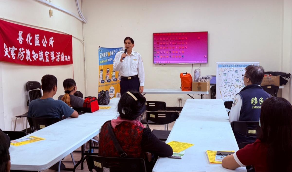 鑑於防災教育不應因語言不同而有隔閡,為協助來自異國的新住民瞭解臺灣的天然災害並提升防災能力,善化區公所,日前位於善化區之內政部移民署臺南市第二服務站,舉辦「新住民防震宣導講習」,希望透過宣導活動,讓新住民朋友可以學習到實用的防災知識,平時了解居家安全、應變知識等重要防災觀念。