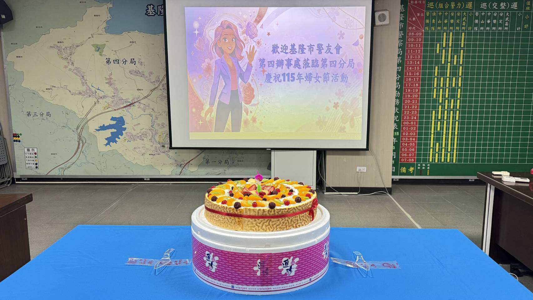 【記者 彭可可/綜合報導】婦女節前夕,基隆市警察局第四分局特別規劃溫馨慶祝活動,由分局長侯興龍攜手基隆市警察之友會第四辦事處,精心準備禮券及蛋糕,於115年3月4日週報時間向全體女性同仁表達敬意與祝福,藉由簡單隆重的儀式,傳達對女性同仁長期辛勞的感謝。