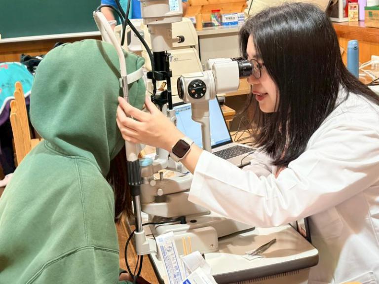 ▲馬偕紀念醫院團隊在司馬庫斯小學為民眾提供眼科視力檢查。(圖/健保署北區業務組提供)