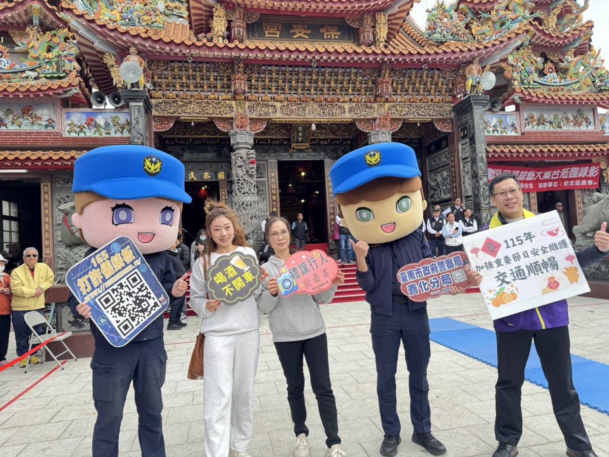 安定保安宮熱鬧開錄《綜藝大集合》 善化警出動警察大頭娃娃加強交通安全與反詐騙宣導!