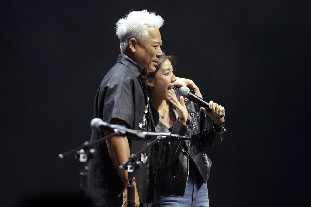 巫啟賢愛女巫詠歡驚喜衝上台親吻父親,成為演唱會最溫馨畫面。(圖/安可娛樂提供)