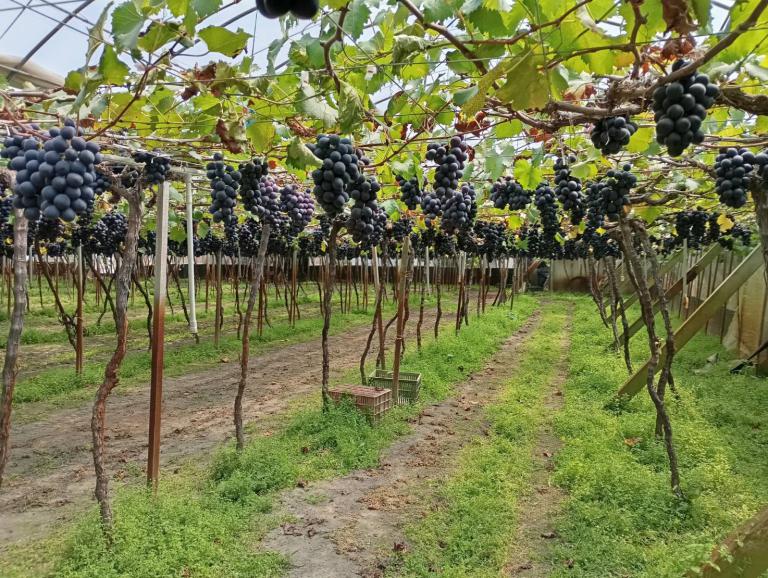 ▲彰化葡萄即將進入早春採收季,溪湖鎮的「壽春葡萄觀光果園」近期將開始採收巨峰葡萄,果園屆時也將開放遊客採果體驗,民眾可聯絡預購,也歡迎家庭或親子團體提前預約採果。(圖╱記者孔亮云攝)
