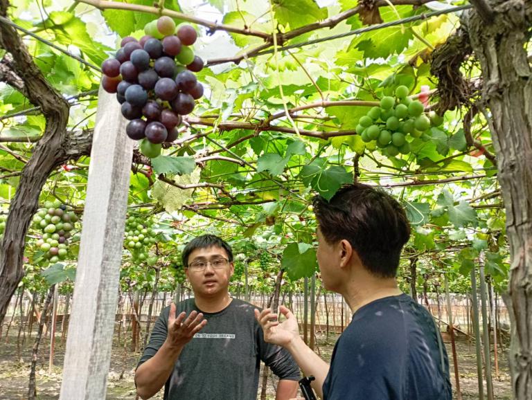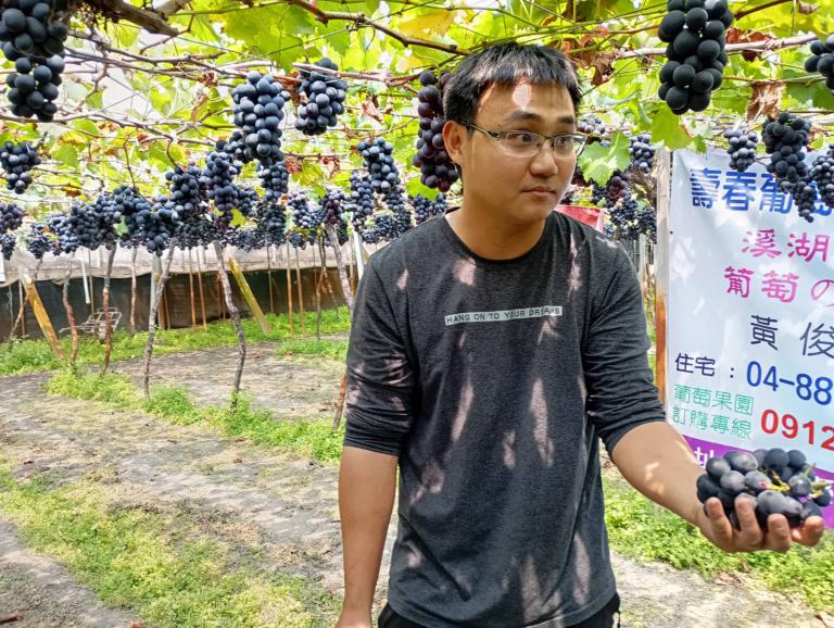 ▲園主黃俊祐表示,受到去年連續降雨影響,導致今年整體產量減少約三分之一,市場價格因此略為調整,但台灣巨峰葡萄特有的果香與新鮮度,仍是吸引消費者的重要優勢。(圖╱記者孔亮云攝)