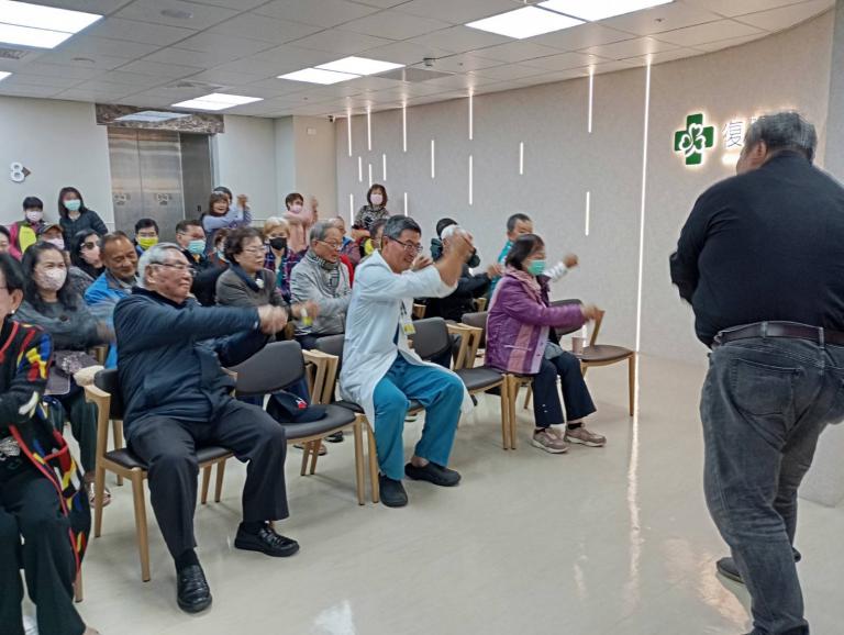 ▲為了讓復健更加貼近生活,現場安排「居家防傷復健操」示範教學,將年終大掃除的常見動作轉化為安全的鍛鍊技巧。(圖╱記者孔亮云攝)
