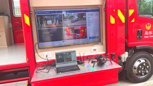 資訊救災指揮車的核心,包含「智慧消防資訊指揮平台」與「智慧消防無人機設備」兩大關鍵系統。其中,「智慧消防資訊指揮平台」被視為災害現場的「大腦」,整合圖資系統、指揮管制、安全管制、現場畫面與遠距會議五大核心功能,能即時整合地理資訊、任務管理與決策輔助,讓指揮官在最短時間內掌握「人員位置、火勢走向、風向變化與資源調度」,提升決策精準度與救災效能,掌握消防員前線執勤的安全。