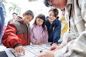 ▲竹市府115年「安心好年.HORSE(好事)發生」加強重要節日識詐宣導活動,市長高虹安(右2)和現場孩童參與闖關活動。(圖/竹市府提供)