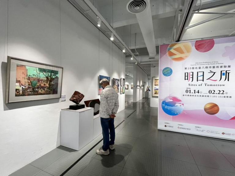 「明日之所 第十屆北臺八縣市藝術家聯展」即日起至2月22日於新竹縣文化局美術館101-102展廳登場,展覽串聯宜蘭、基隆、臺北、新北、桃園、新竹市、新竹縣與苗栗等北臺地區的藝術能量,展出19位藝術家、63件精彩作品,包含不同世代與媒材,透過藝術傳遞跨世代的文化語言。