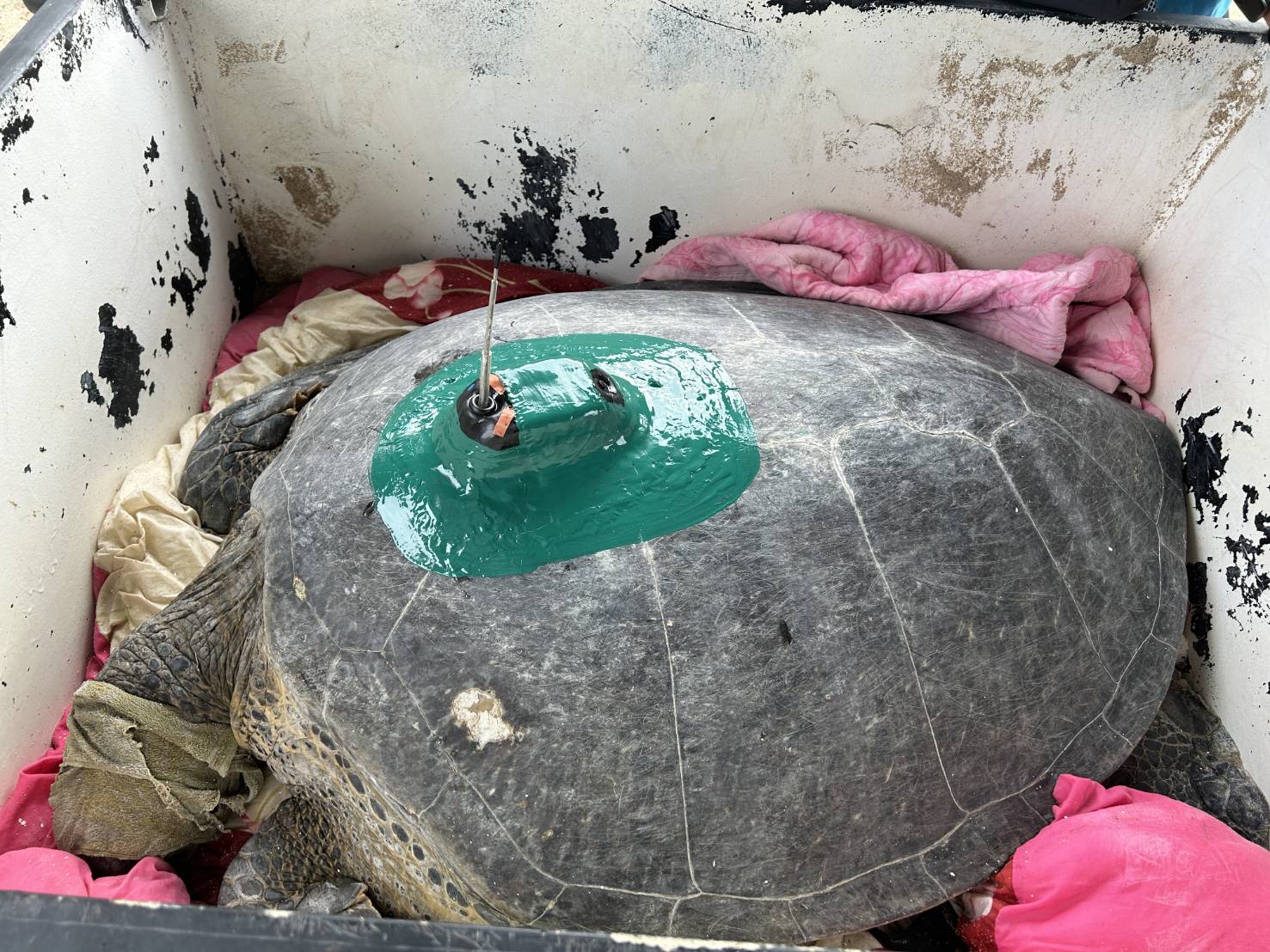海保署與社團法人台灣咾咕嶼協會及國立海洋生物博物館合作,於該母龜完成第4窩產卵後裝設衛星發報器,展開產後洄游路徑與覓食棲地追蹤,為臺灣海龜生活史研究補上關鍵拼圖。