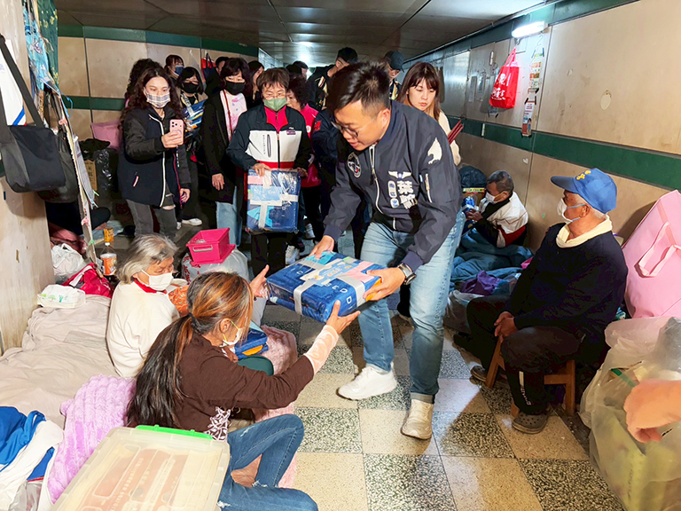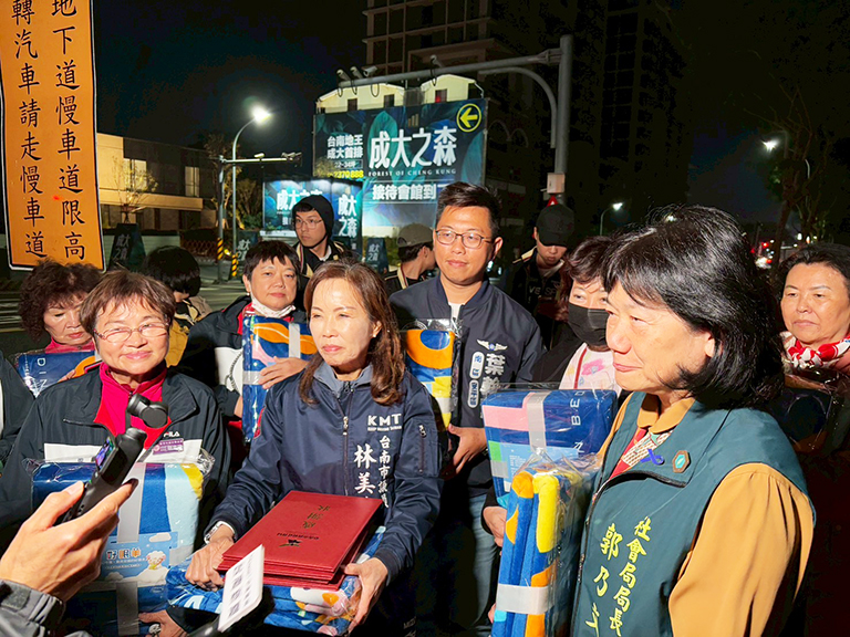 寒流接連來襲,臺南市議員林美燕與接班人葉翰勳偕同善心團體和店家,於2月 12日晚間集體深入街友休憩最密集的北門路地下道,當面贈送募得的過年禦寒物資,讓街友們感動頻頻微笑道謝。