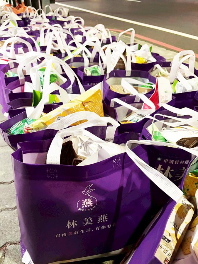 ▲臺南市議員林美燕與接班人葉翰勳偕同善心團體和店家愛心送暖慰問街友60人。(圖/南市議會提供)