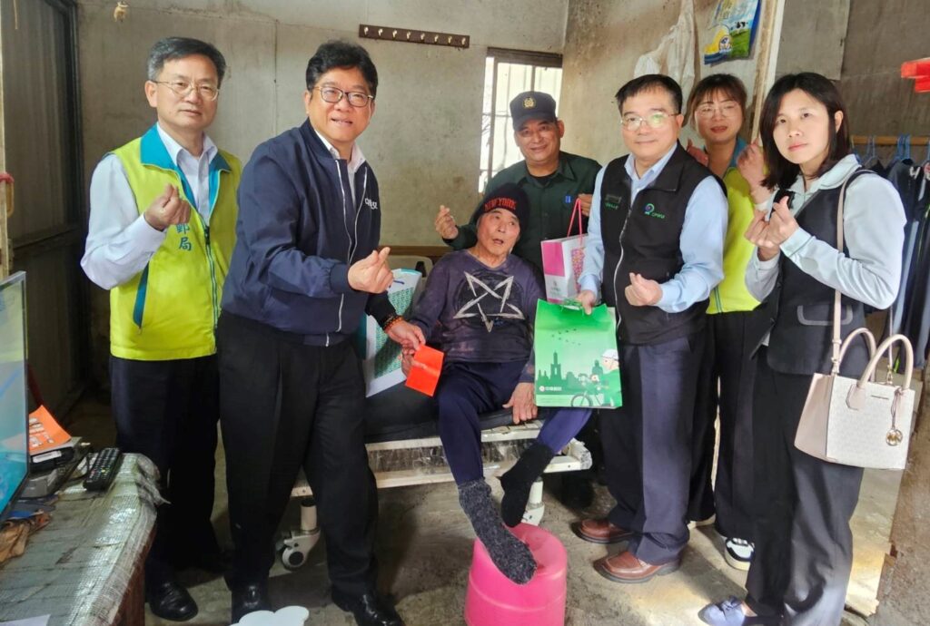 《圖說》桃園郵局局長吳進益(左二)率同仁關懷偏鄉獨居老人,關心長者生活近況。(圖/桃園郵局提供)