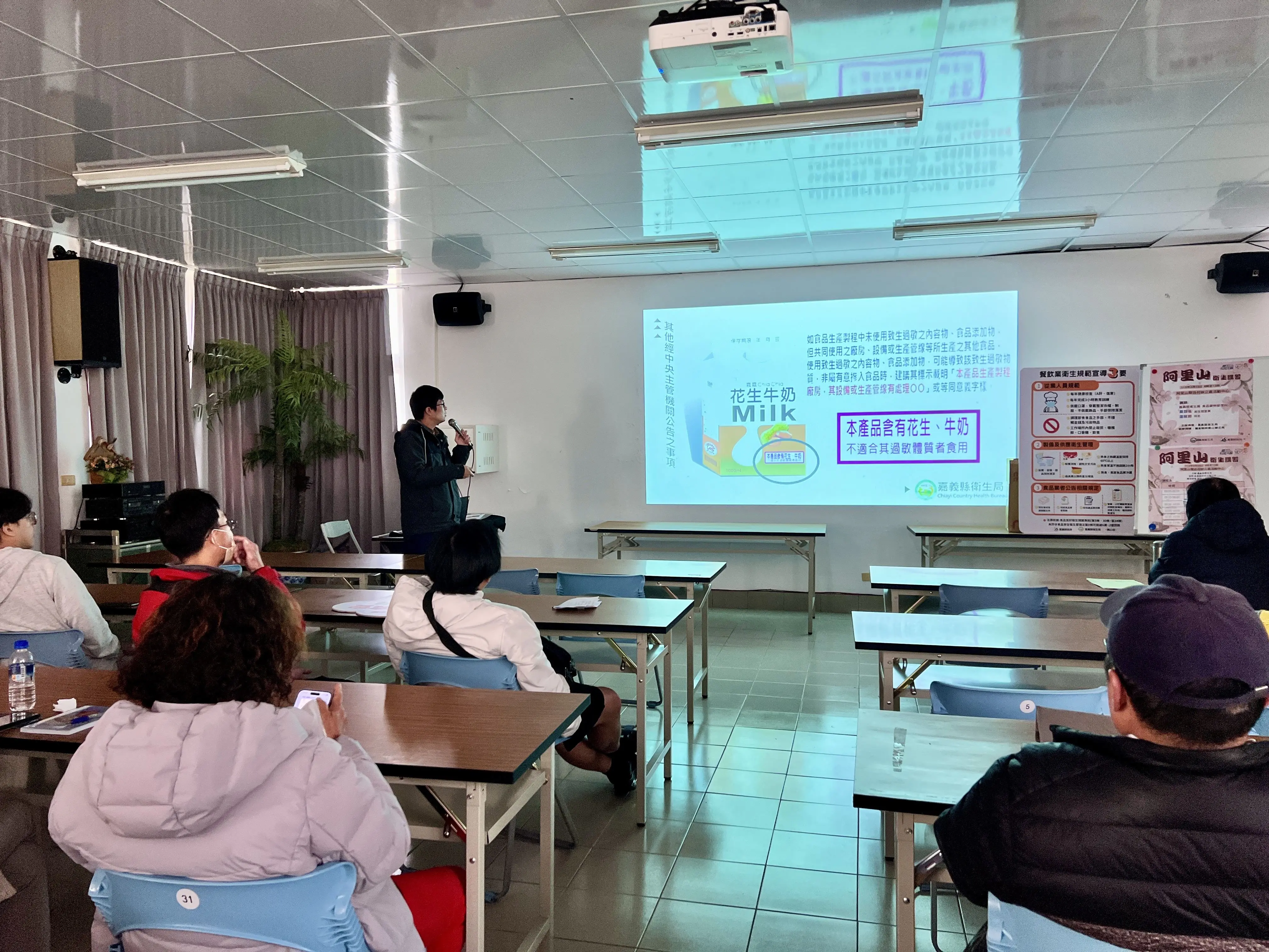 衛生局3月19日、20日分別於阿里山聯合村辦公處活動中心與奮起湖社區活動中心舉辦2場食品業者衛生講習,今首場54人次參加,會場同步協助業者完成食品業者登錄,並針對周邊60家商攤、店家稽查與輔導食品衛生法規,輔導食品標示587件,強化源頭把關。