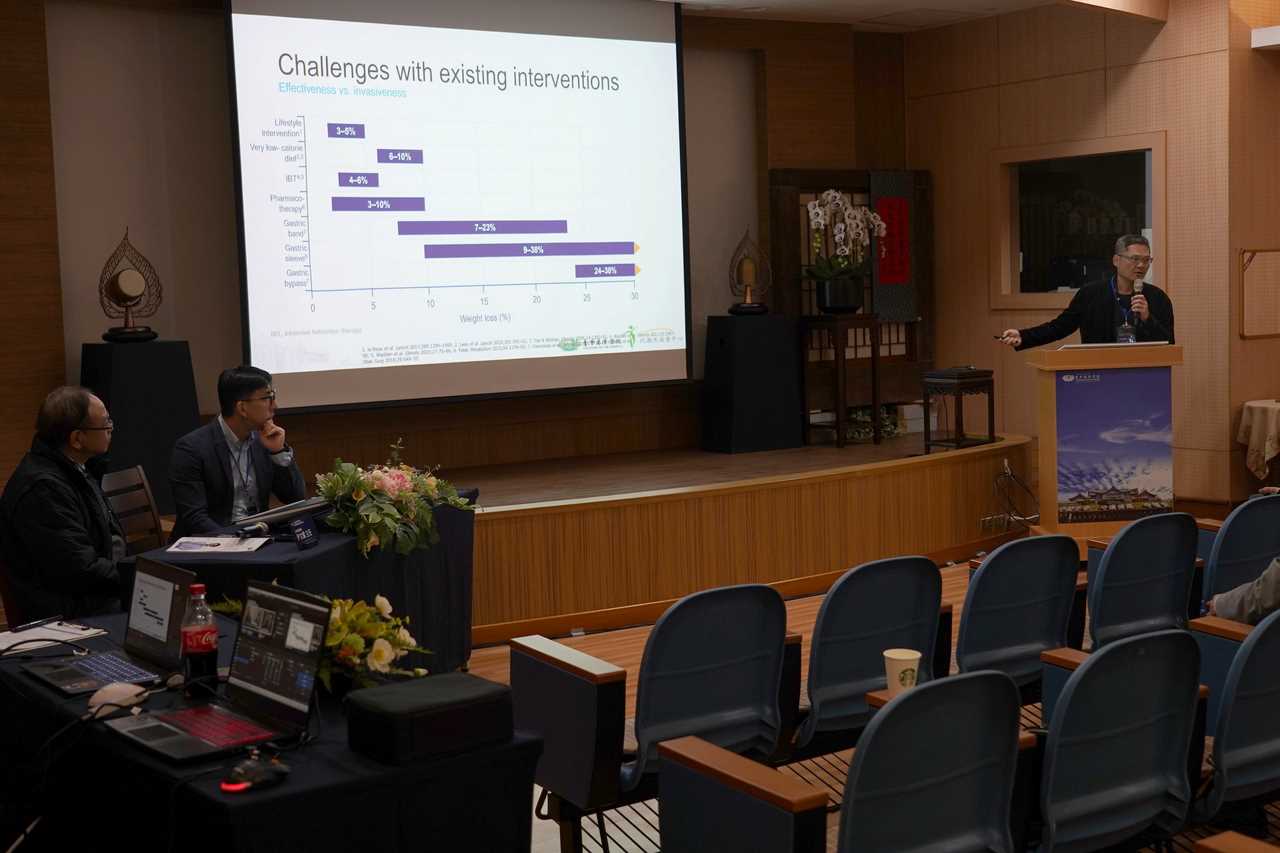 下午議程則從外科手術延伸至內科治療與醫療科技應用。隨著減重藥物的蓬勃發展,研討會進一步分析藥物治療的現況與未來,並探討「內外兼修」的治療趨勢。此外,針對醫療科技的應用,也展示機器人手臂與VR(虛擬實境)系統在減重手術中的發展成果,期盼藉由科技輔助,提升手術的安全性與精準度。
