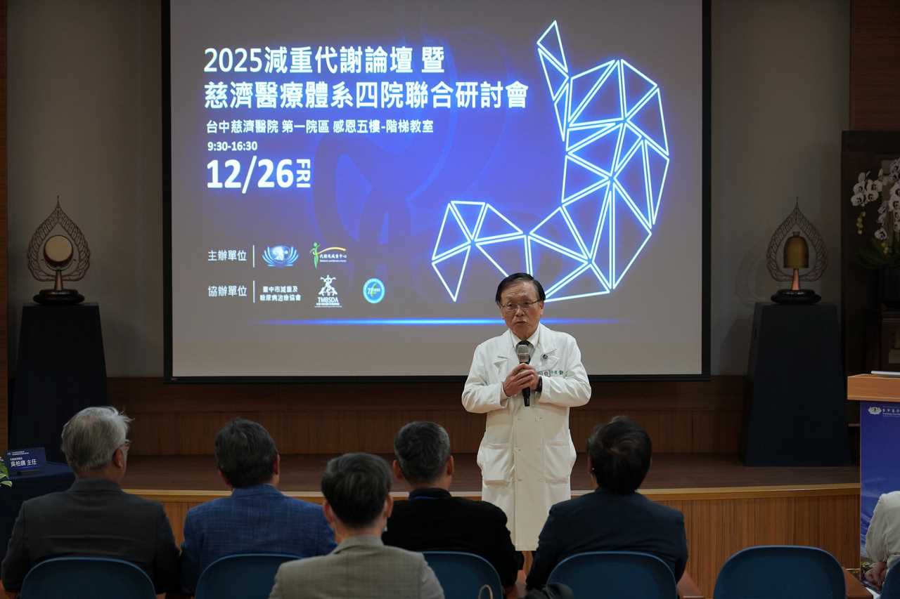 陳健祥/台中 2025減重代謝論壇暨慈濟醫療體系四院聯合研討會,26日在台中慈濟醫院舉行,集結慈濟醫療體系四院與國內減重領域內外科專家,針對當前減重手術的技術與經驗進行深度交流。本次論壇除了探討新興術式,更針對手術未達預期後的「重修」策略進行實務剖析,吸引眾多醫療專業人士與會,共同見證減重醫學的經驗傳承。 ►台中慈濟醫院簡守信院長(右五)、外科部主任鄭紹彬(右四)與論壇講師群合影。 台中慈濟醫院簡守信院長與外科部主任鄭紹彬於開幕致辭時共同強調,醫療進步需仰賴團隊的精進與合作。簡院長表示,面對疾病的勇氣應轉化為追求健康的智慧,勉勵醫者在技術成熟的今日,仍須持續追求卓越。鄭主任則推崇減重手術的發展歷程,形容本次論壇如同一場高水準的「成果發表」,讓年輕後輩能汲取國內頂尖專家的臨床經驗。兩人一致期盼透過研討,深化跨院際的學術交流,共同提升減重代謝醫療的照護品質與安全性。 ►台中慈濟醫院院長簡守信於開幕致辭表示,減重醫療技術已趨成熟,醫者仍應持續精進,協助病人將面對體重的「勇氣」轉化為追求健康的「智慧」。 上午議程聚焦於近年備受矚目的SASI(雙通道胃繞道手術)。台中慈濟醫院代謝及減重中心主任李旻憲與多位專家,分別針對SASI與LSG(縮胃手術)及OAGB(單吻合胃繞道)進行比較分析。李旻憲主任指出,隨著減重手術發展近廿年,如何針對復胖或效果不如預期的案例,進行合適的「救援」與「重修」,是當前臨床的重要課題。與會專家也就縮胃手術後的後續處置策略進行實務討論,期盼讓治療更貼近病人長期健康需求。 ►台中慈濟醫院代謝及減重中心主任李旻憲,針對手術成效數據與介入策略進行專題分享。 下午議程則從外科手術延伸至內科治療與醫療科技應用。隨著減重藥物的蓬勃發展,研討會進一步分析藥物治療的現況與未來,並探討「內外兼修」的治療趨勢。此外,針對醫療科技的應用,也展示機器人手臂與VR(虛擬實境)系統在減重手術中的發展成果,期盼藉由科技輔助,提升手術的安全性與精準度。 ►臺北醫學大學雙和醫院代謝及體重管理中心主任深入剖析SASI(雙通道胃繞道手術)與LSG(縮胃手術)之比較。 本次論壇特別促成慈濟醫療志業各院交流,包含花蓮、台北、大林與台中慈濟醫院醫師皆參與分享。透過實體論壇的腦力激盪,建立減重專業人士的交流平臺,更期許將這些寶貴的臨床經驗轉化為更優質的醫療服務,為肥胖病人找回健康。 ►中壢天晟醫院副院長徐光漢以實際案例,分享減重手術併發症的判斷與處置經驗。