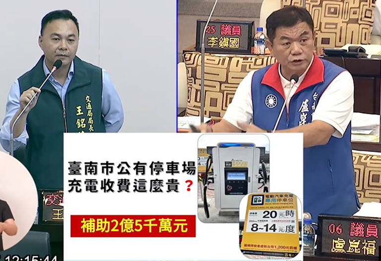 市議員盧崑福接獲民眾檢舉函,交通局發包「臺南市公有停車場電動汽車充電環境與設備建置暨停車開單充電服務勞務委託案」決標金額2億6360萬元,這項標案不僅由市府提供土地,環保局更補助2億5118萬,但為何每度電收費8到14元,價格明顯偏高,電費收費如何分攤?另外,得標廠商台達電在台灣已經沒有生產線,為何仍可以得標,檢舉人懷疑該廠商是用大陸產品的貼牌貨,要求市府嚴格監督。