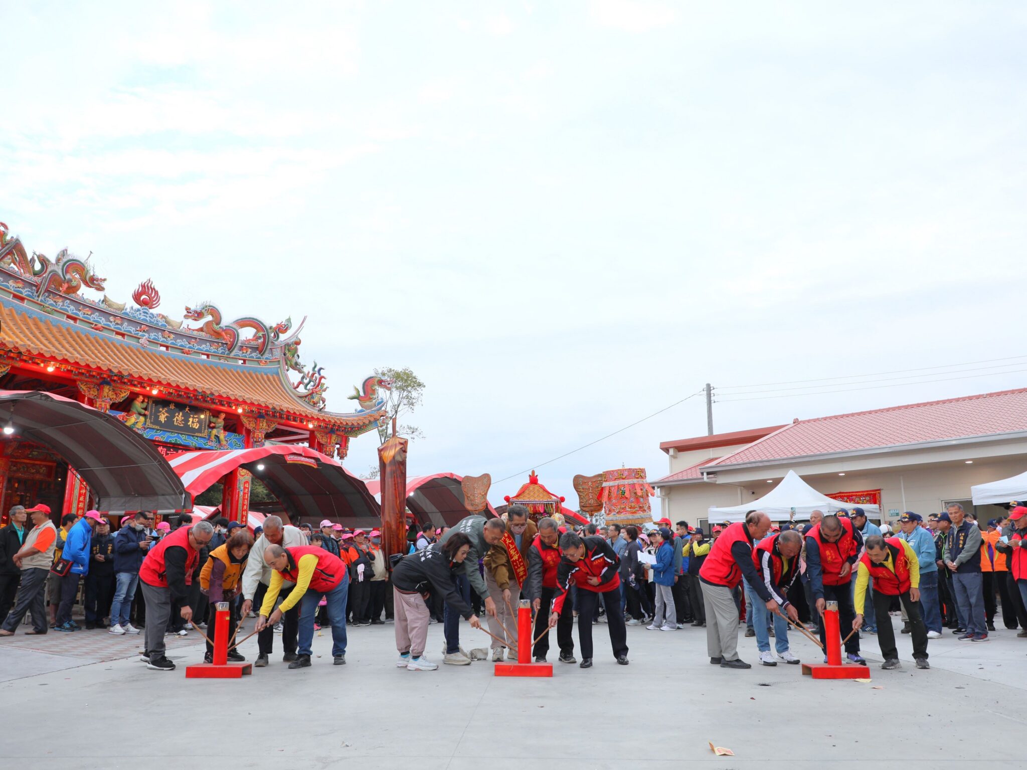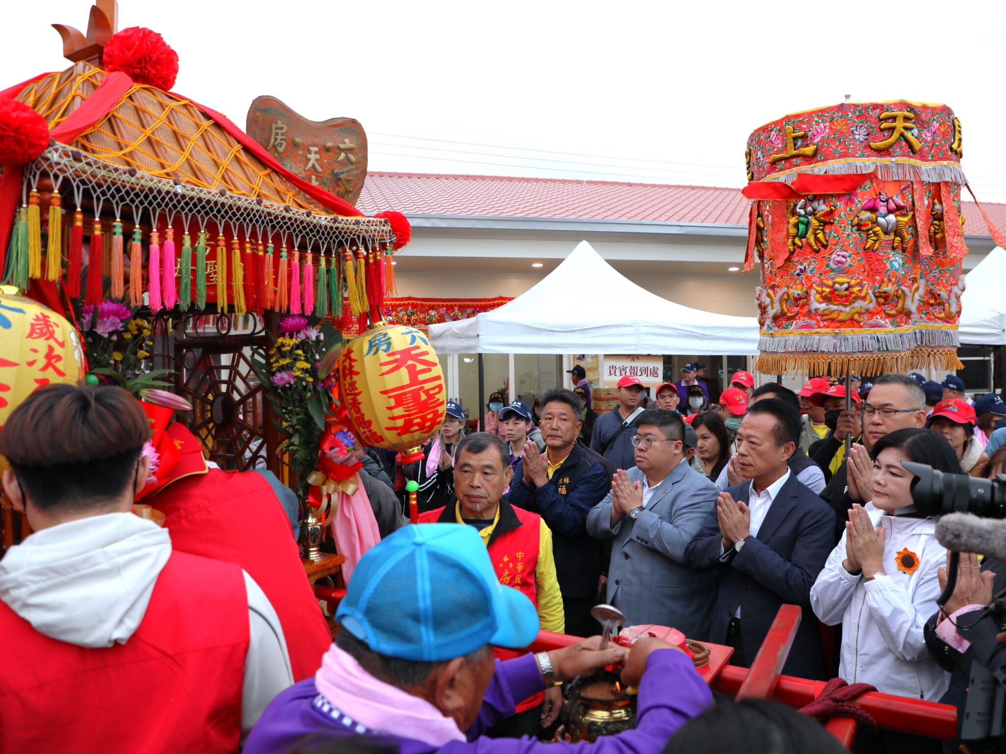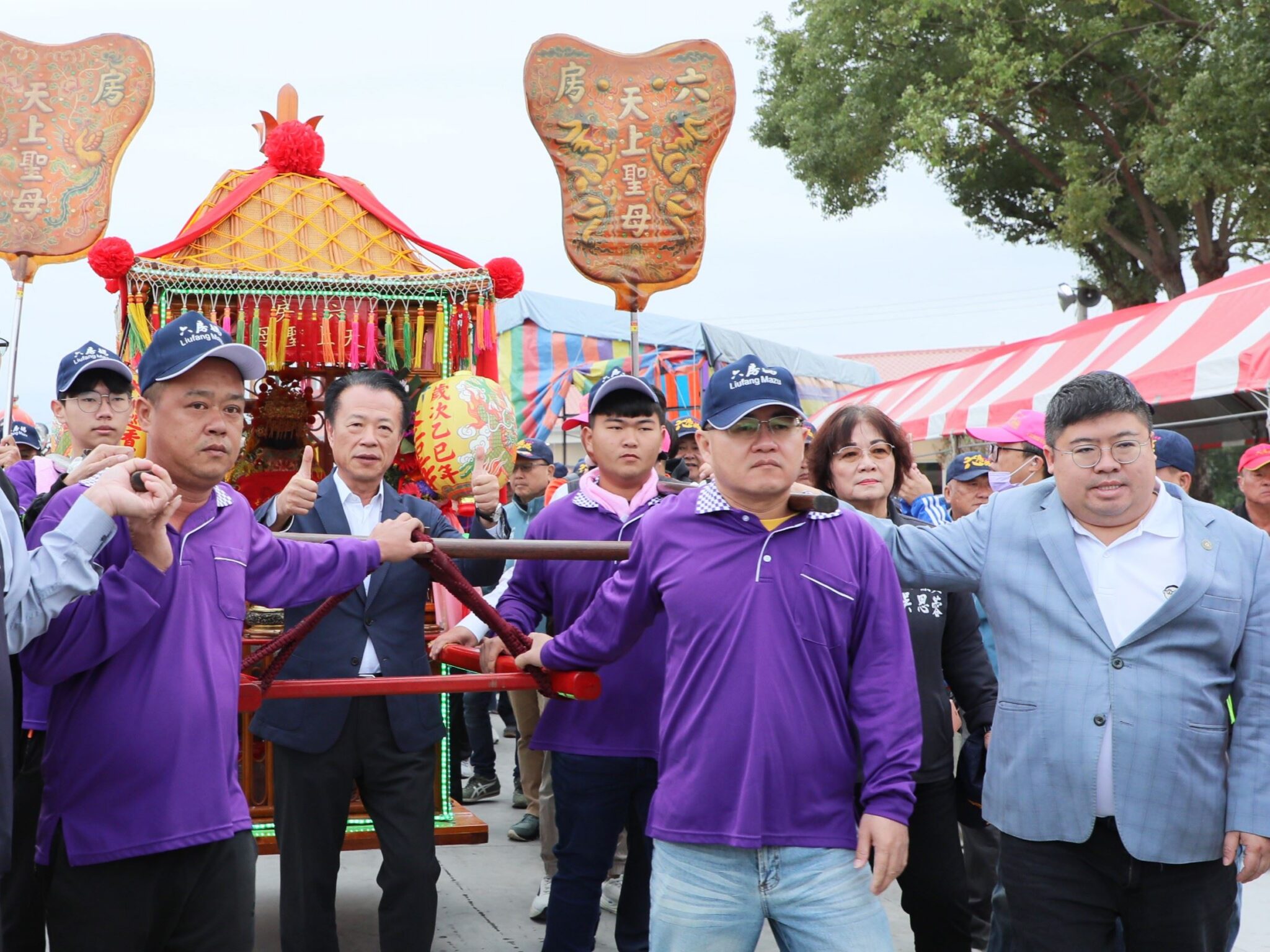 雲林六房天上聖母睽違10年,再度來到嘉義縣大林鎮延香賜福。13日晚間,六房媽駐駕在新建啟用的福德爺文武財神廟,今(14)日清晨,嘉義縣長翁章梁、雲林縣長張麗善、立法委員蔡易餘、丁學忠、嘉義縣議員吳思蓉、江志明、大林鎮長許有疆等貴賓皆親臨現場,隨香參拜,恭迎六房媽起駕。
