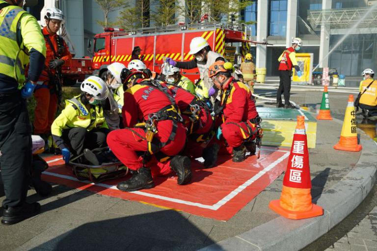 縣府消防局長陳中振表示,這場演練情境設定為台元科技園區因規模5級淺層地震造成化學桶掉落地面造成洩漏