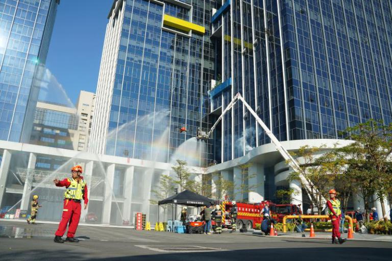 ▲新竹縣政府消防局第一大隊在台元科技園區舉辦115年度春節期間救災救護勤務演習。(圖/記者蔣彤雲攝)