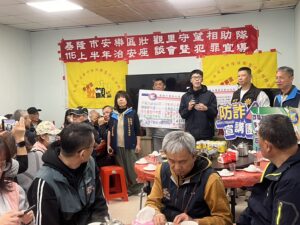 【民眾網編輯方笙楠基隆報導】基隆市警察局第四分局為強化社區治安及提升民眾防詐意識,於民國115年3月8日18時許,結合安樂區壯觀里守望相助隊舉辦「115年上半年治安座談會暨犯罪預防宣導」活動,由安樂派出所長陳品碩率同偵查隊及分局業務組人員到場與里民交流,傾聽地方意見並宣導最新犯罪預防觀念。