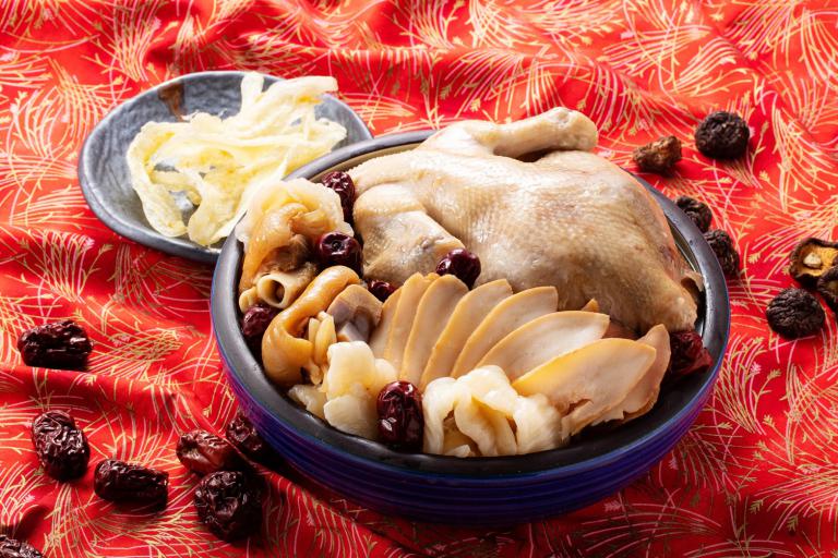 其中,鮑魚佛跳牆是以多樣食材經長時間細火慢燉,湯色濃潤、香氣沉穩,入口厚實卻不顯張揚,成為年夜飯中安定人心的第一道。鮑片花膠雞湯,則以雞湯為基底,結合花膠的滑順口感與鮑片的鮮味,風味溫潤柔和,特別適合長輩與孩童一同品嘗,為餐桌帶來滋養與平衡。