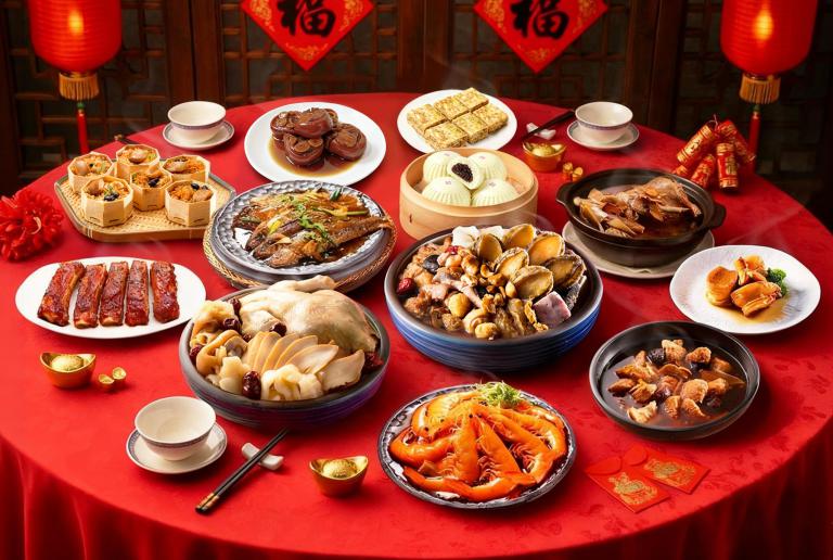 而這次聯名推出「圓滿年菜組」與「好年家宴組」兩款4至6人份年菜組合,菜色涵蓋鮑魚佛跳牆、鮑片花膠雞湯、鮑魚櫻花蝦米糕、麻油猴頭菇、麻油嫩筍燜鴨、碳烤豬肋排、佃煮香魚、冰釀醉蝦等多道經典手路菜;並搭配沁園春人氣點心豆沙大包與千層糕,提供層次完整、節奏分明的年夜飯配置。