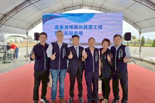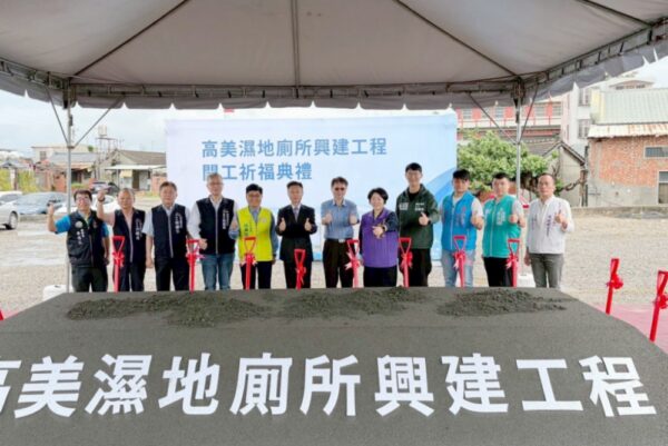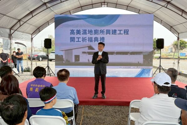 高美濕地即將迎來嶄新的「陽光公廁」,告別遊客長期面臨的「如廁難」問題。臺中市副秘書長林育鴻4/1日出席「高美濕地公共廁所新建工程」動土祈福典禮表示,高美濕地不僅是臺中的自然瑰寶,更是世界旅客認識臺中的重要窗口。市府於2019年完成遊客服務中心啟用,提供完善公共服務與生態教育空間,如今再推動公共廁所新建工程,將進一步完善木棧道周邊公共設施,讓國內外遊客都能享有更便利、舒適的遊憩環境。