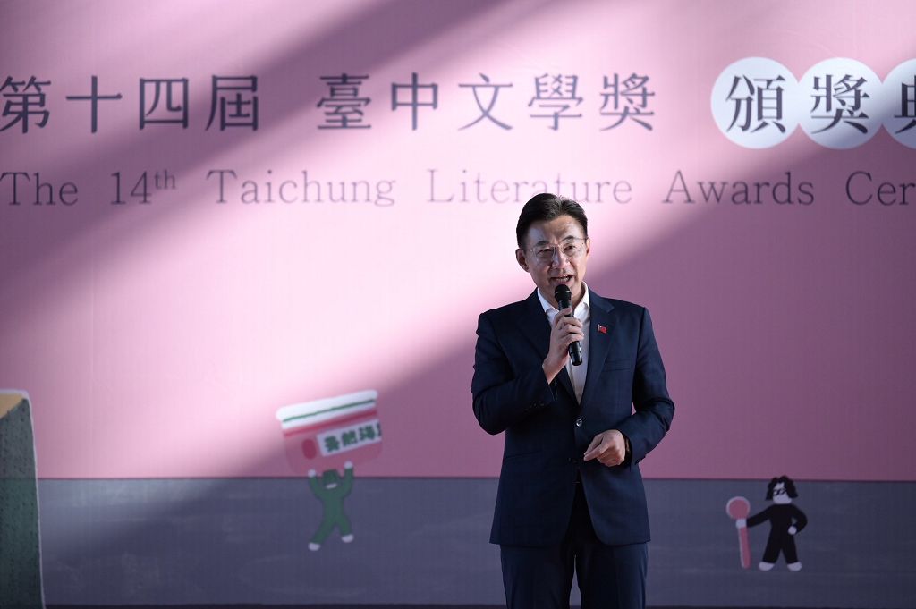 臺中市副市長 鄭照新 表示,臺中從日治時期的櫟社到當代作家群聚,一直具有深厚文學底蘊。今年主題「文火慢燉.細寫人生」象徵在 AI 時代中,文學仍是城市情感的連結,使故事得以傳承。