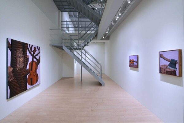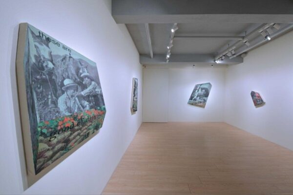 Michael Rikio Ming Hee Ho 的創作圍繞語言與圖像,並將其壓縮進盒狀的錯視結構中。以夏威夷為核心脈絡,挪用歷史性圖像與片段文字,不僅映照當代自我意識的碎裂狀態,更藉幽默自嘲的姿態回應不安;Penny Davenport 長期服務於特教兒童機構,其創作關注社會化過程的深層影響,透過自然與動物的凝視,引導觀者轉換視角,在自然中尋得內在安寧;而在 Ray Han 充滿懷鄉與現實殘酷投射的風景中,平凡碎片與真實處境重疊,使人意識到看似遙遠的情感或議題,早已滲入我們的日常。五位藝術家以彼此獨立卻相互呼應的方式,回應這個過剩現實所帶來的心理狀態——在此,藝術不再只是表現,而成為一種承載、轉譯與暫時安放的結構。
