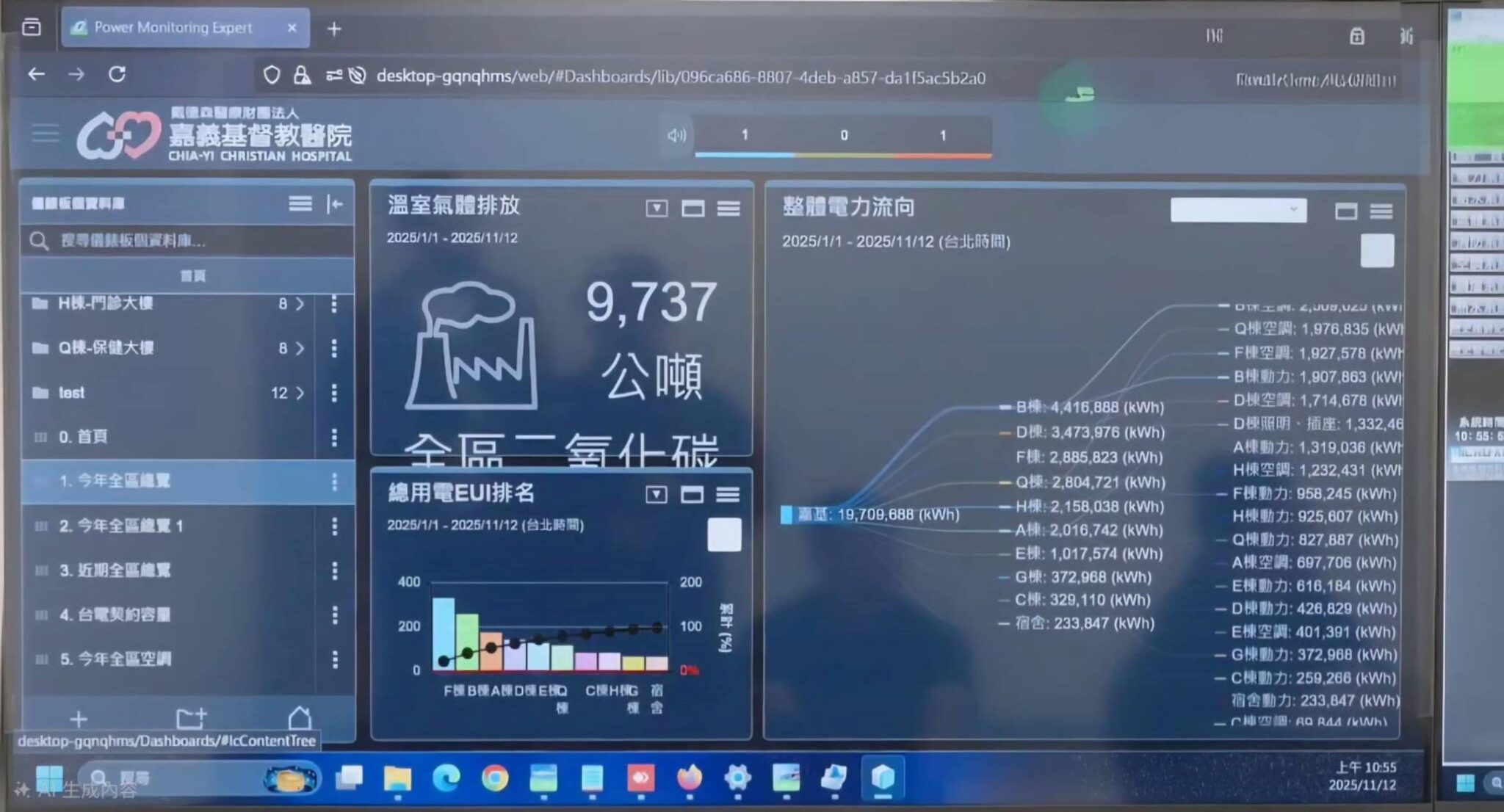 面對未來淨零趨勢,嘉基更已提前部署。2022 年完成ISO14064-1 溫室氣體盤查後,持續擴大節能資料科學化管理,並正在規劃導入空調智慧調控系統,讓冰水主機能藉由人工智慧判讀後,自動維持在最佳運轉效能。陳煒院長強調,嘉基不只追求節能,更追求『智慧節能』,讓每一度電都被用在最需要的地方。