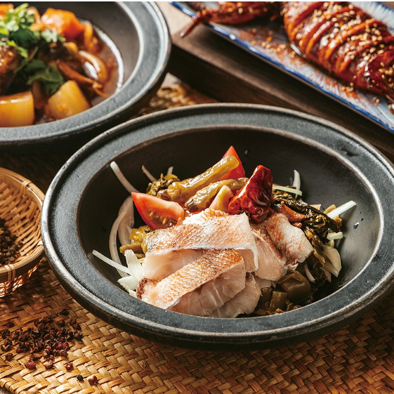 酸香濃郁、辣勁十足,將川味酸菜魚與台式熱鍋風格融合。一入口先感受酸香開胃,接著辣度堆疊出勁爽快感,是愛吃辣老饕的指定口味。嚴選酸菜魚經典湯頭比例,風味直逼店內招牌料理。