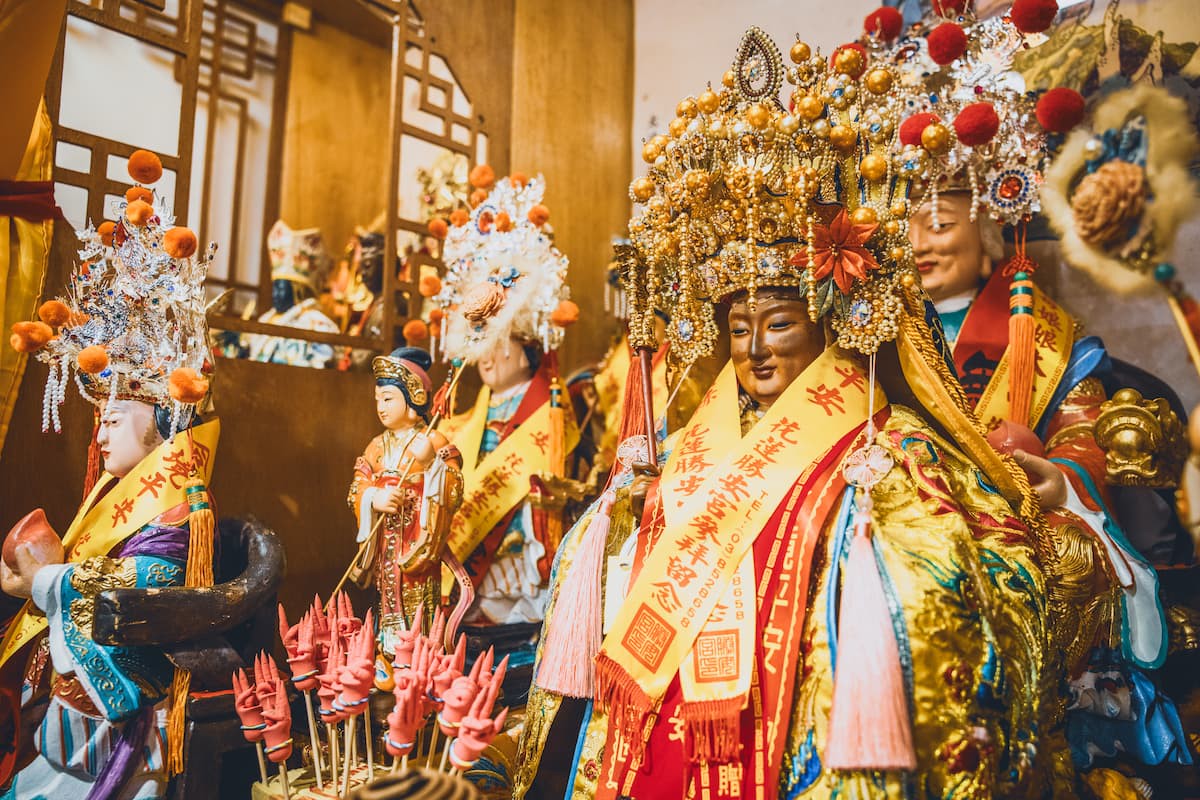 聖玄堂主神「無極老母大慈尊」與諸神尊,入火安座象徵香火再啟、母恩長存。圖/南天直轄無極聖玄堂提供