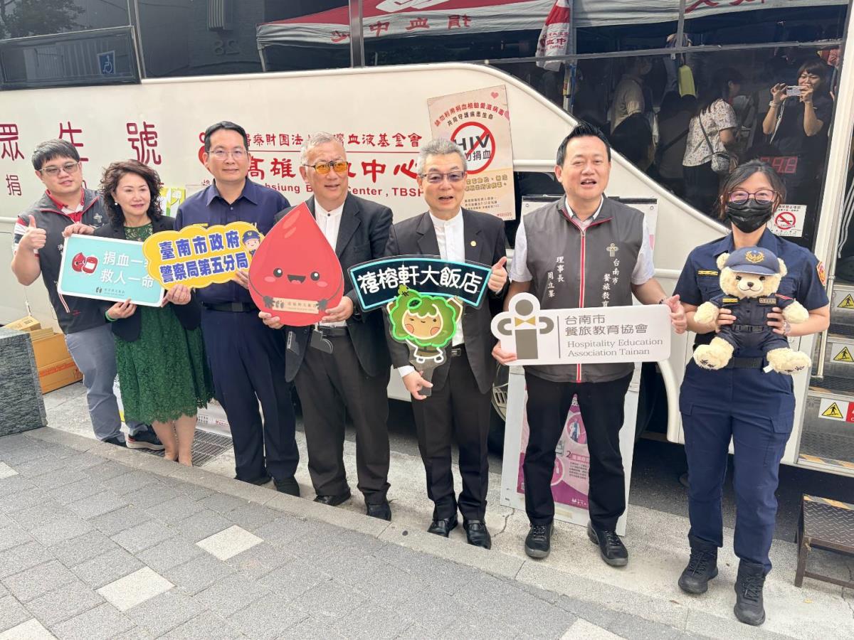 記者黃冠源/台南報導         臺南市政府警察局第五分局於(18)日與禧榕軒大飯店共同舉辦「熱血挽袖」捐血公益活動。繼先前合作的「交通安全月—小小警察禧榕軒大飯店闖關護交安」體驗活動後,雙方再度攜手,以公益為主軸,同步融入交通安全與識詐宣導,希望透過民眾參與捐血的溫暖行動,提升用路安全意識並強化反詐免疫力,讓愛心與安全守護同行。