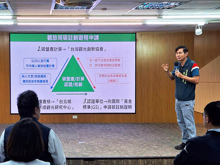 台南市政府12月3日公布三條全新低碳旅遊遊程,為永續旅遊再創新里程碑,以及所轄虎頭埤風景區完成全台首例「景區旅客碳足跡計算」,並取得國際黃金標準(Gold Standard)碳註銷證明(Carbon Offset),與全球永續旅遊市場及企業ESG接軌。