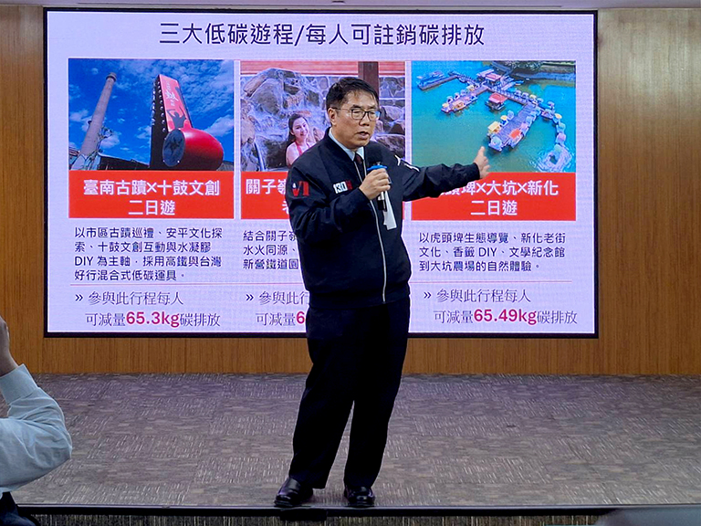 市長黃偉哲表示,旅遊難免產生碳排,重點不在追求零排放,而是在可行範圍內選擇碳排最低的方式。台南率全台之先取得國際 GS 減碳遊程認證,未來也將持續擴充,讓民眾在「吃在地、玩在地」的過程中自然落實減碳,邀請大家用旅行支持永續。