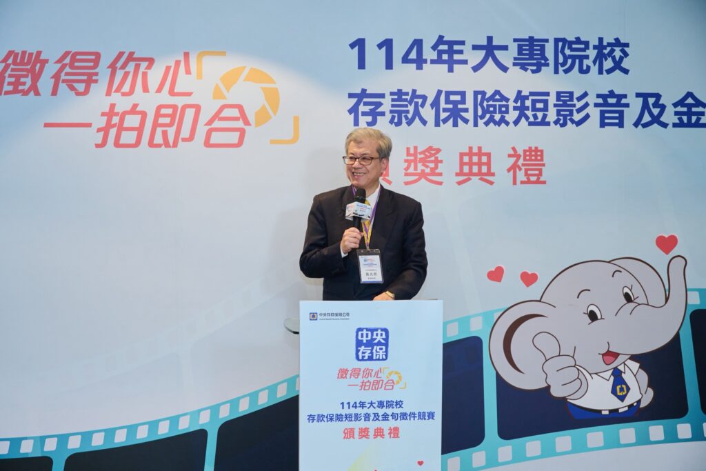 圖說: 中央存款保險公司黃光熙副總經理於頒獎典禮恭喜所有入圍與得獎的同學,這些作品不僅展現創意,更是推動金融知識普及的重要力量。(圖片提供/中央存保)