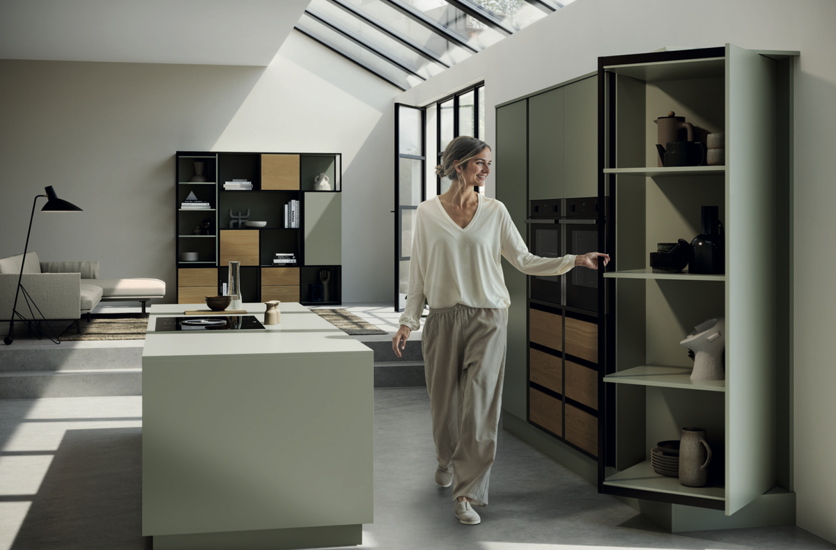 全新展示中心以12大情境區重新詮釋德式精工,包含玄關、廚房、客廳、臥室、更衣室與小坪數空間,呈現「隱於細節、動於精準」的品牌精神。