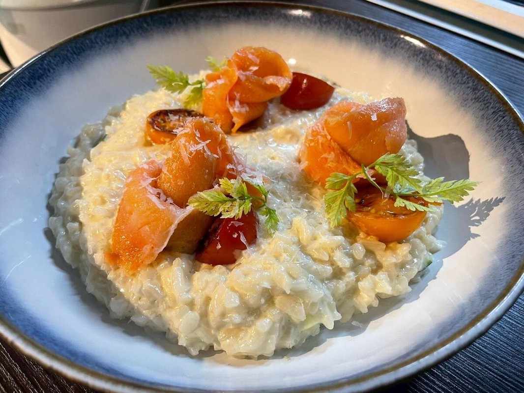 A:消費者推薦西瓜沙拉、辣味牛肚甜甜圈與自製椒麻薯條,都是極具特色的開胃菜。主餐部分,花雕酒香蛤蜊義大利麵與黑松露包心小卷燉飯,則被許多熟客視為松山必吃美食。