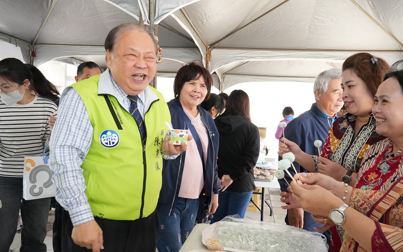 澎湖縣長陳光復親臨會場,逐一走訪攤位,品嚐各社區精心準備的特色美食,包括蚵寶寶麵線、藥膳鐵蛋,以及東南亞婦女協會製作的椰子球等,充分感受社區夥伴的用心與熱情。他也特別感謝各社區理事長、村長、志工與居民的齊心投入,以「在地服務」的精神,照顧社區內的長者、新住民與兒童,建構綿密而溫暖的社區照顧網絡。