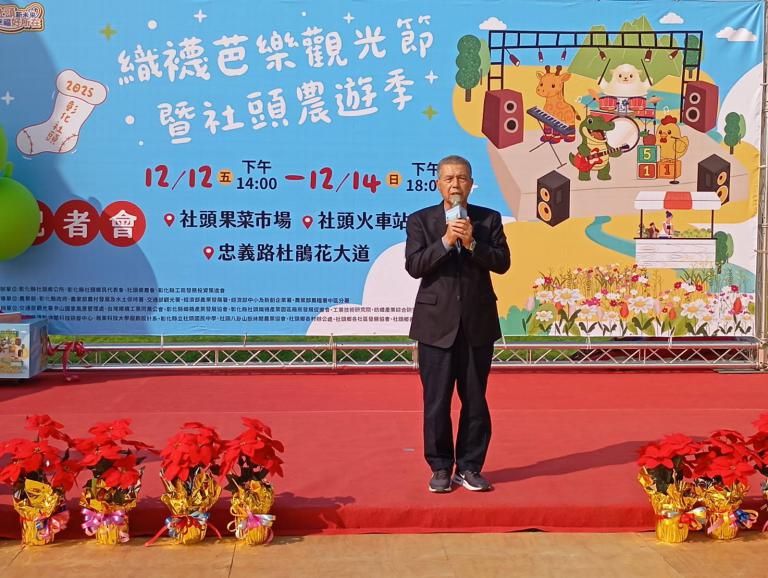 眾所矚目的社頭鄉年度產業盛事「2025彰化社頭織襪芭樂觀光節」即將在12月12日至14日連續三天於社頭鄉果菜市場隆重登場。社頭鄉公所於今(5)日上午在社頭鄉杜鵑花大道花海園區辦理「2025彰化社頭織襪芭樂觀光節記者會」,現場同步展示社頭在地農特產品及織襪產品。